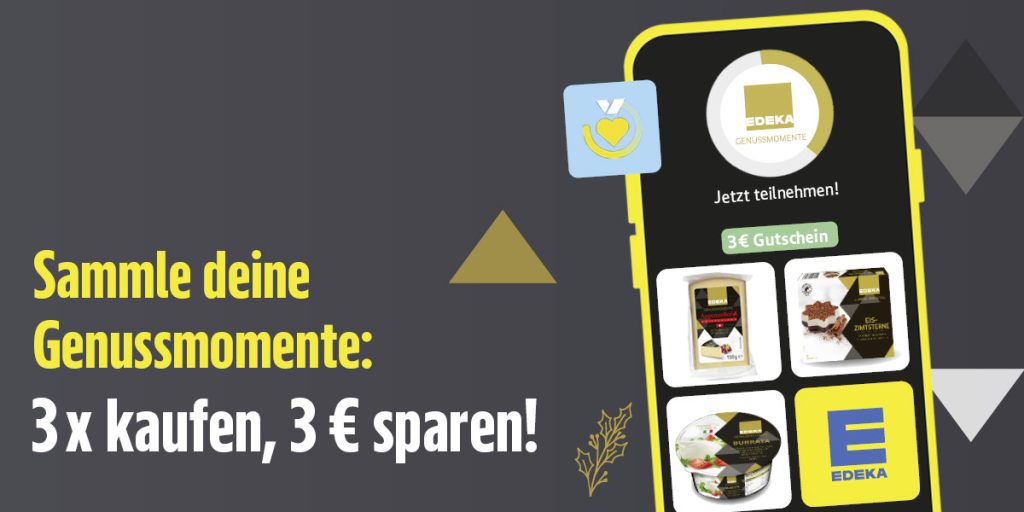 Kaufe dreimal mindestens einen Genussmomente-Artikel und erhalte anschließend einen 3-€-Gutschein für deine Lieblingsartikel.