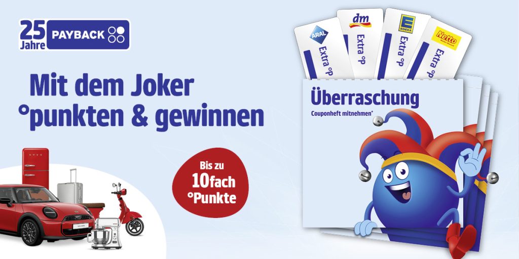 PAYBACK Joker ist zurück! Jetzt bei jedem Einkauf Coupons sichern und mit etwas Glück einen Mini Cooper E gewinnen!